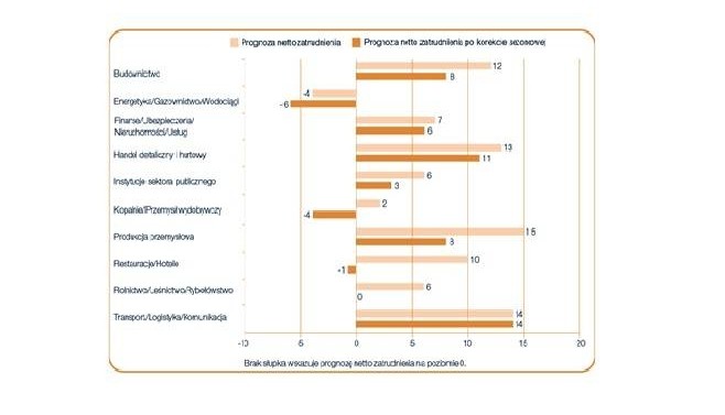 Według globalnego raportu Barometr Manpower Perspektyw Zatrudnienia już dziewiąty kwartał z rzędu wśród przedsiębiorców w Polsce będzie panował optymizm. W sześciu z 10 badanych sektorach gospodarki oraz we wszystkich badanych regionach kraju oczekuje się wzrostu poziomu zatrudnienia. Najlepsze perspektywy w nadchodzących trzech miesiącach odnotowano dla branż Transport/Logistyka/Komunikacja oraz Handel detaliczny i hurtowy. Największą chęć poszerzania swoich zespołów deklarują pracodawcy z dużych firm, liczących powyżej 250 pracowników.