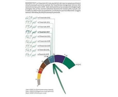 Odczyt „Barometru EFL” dla branży produkcyjnej na I kwartał tego roku wyniósł 61,8 pkt., a dla budowalnej 57,7 pkt. Wyższe wartości wskaźnika wynikają przede wszystkim z optymizmu dotyczącego planowanych inwestycji. Jego wzrostu w przypadku obu branż spodziewa się prawie dwa razy więcej przedsiębiorców niż trzy miesiące temu. Ponadto,...