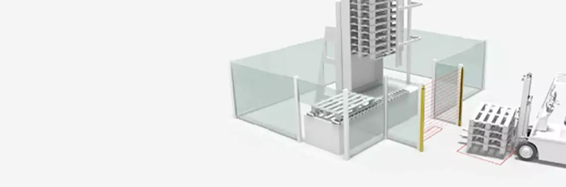 Do tej pory wiele stacji przeładunkowych z funkcją automatycznego ponownego uruchomienia było zabezpieczonych w następujący sposób: bezkontaktowe urządzenia ochronne (ESPE) zabezpieczały punkt dostępu – jeśli ESPE zostało wzbudzone, maszyna i przenośnik zostają zatrzymane. Aby uniknąć konieczności ponownego uruchomienia zatrzymanej maszyny po wykonaniu załadunku przez pojazd przeładunkowy , np. przez wózek widłowy, jako sygnały mutingu stosuje się dwie pętle indukcyjne. Są one umieszczone w posadzce przed urządzeniem ESPE. Gdy wózek widłowy przesuwa się nad pętlami indukcyjnymi, bezkontaktowe urządzenia ochronne zostają tymczasowo zmostkowane. To rozwiązanie nie odpowiada już obecnym standardom technologii bezpieczeństwa: koncepcja systemu często ograniczona jest do analizy jednokanałowej, a w rezultacie, w pewnych okolicznościach wydajność systemu bezpieczeństwa nie spełnia wymogów dla danego zastosowania. Nowy typ zabezpieczenia dostępu do magazynu palet ma na celu uniemożliwienie wejścia osób, ale jednocześnie umożliwia wprowadzenie palet za pomocą wózka widłowego.