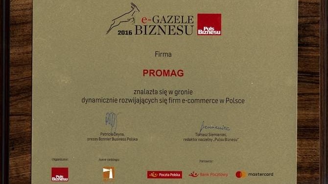 Firma PROMAG S.A. kolejny rok z rzędu znalazła się w gronie laureatów rankingu e-Gazele Biznesu, który wyłania najdynamiczniej rozwijające się przedsiębiorstwa w branży e-commerce.