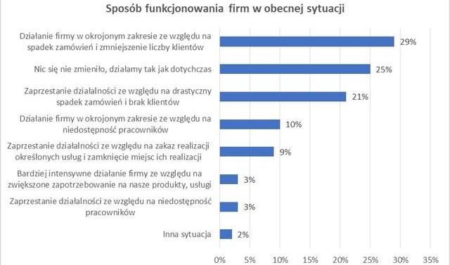 Statystyki pokazują, że biznes został skażony koronawirusem znacznie bardziej niż ludzie. Jak wynika z badania przeprowadzonego na zlecenie Rejestru Dłużników BIG InfoMonitor, pandemia z dnia na dzień unieruchomiła niemal jedną trzecią mikro, małych i średnich przedsiębiorstw. Te firmy znalazły się w najgorszej sytuacji. Połowie firm pandemia ograniczyła produkcję i obsługę klientów. Powodów nie brakuje, drastyczny spadek zamówień wynikający z paraliżu gospodarki, administracyjny zakaz realizacji określonych usług oraz niedostępność pracowników. W warunkach siejącego lęk wirusa, na razie pracuje bez zmian co czwarta firma. Są też biznesy, które zyskały, ale jest ich niewiele. Tylko trzy firmy na 100 przyznają, że właśnie przeżywają boo...