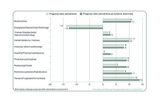W dziewięciu z 10 badanych sektorach gospodarki oraz we wszystkich badanych regionach Polski oczekuje się wzrostu poziomu zatrudnienia. Najlepsze perspektywy w nadchodzących trzech miesiącach odnotowano dla branż Transport/Logistyka/Komunikacja. Wynik dla sektora Kopalnie/Przemysł wydobywczy jest pierwszą dodatnią prognozą uzyskaną dla tej branży od ostatnich trzech lat. Największą chęć poszerzania swoich zespołów deklarują pracodawcy z dużych firm, liczących powyżej 250 pracowników.