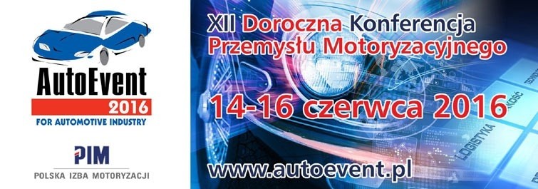 14-16 czerwca br. w Zawierciu odbędzie się XII Doroczna Konferencja Przemysłu Motoryzacyjnego w Polsce AutoEvent 2016 organizowana przez Polską Izbę Motoryzacji. Hasłem przewodnim tegorocznego wydarzenia jest: „Pozycja polskich firm w Europie. Innowacje sposobem na przewagę konkurencyjną”.