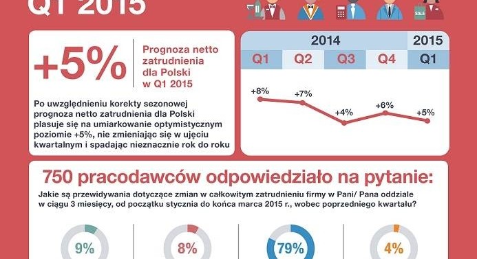 Według Barometru Manpower Perspektyw Zatrudnienia polscy pracodawcy są umiarkowanie optymistyczni co do planów zwiększania zatrudnienia w I kwartale 2015 r. Już siódmy kwartał z rzędu wśród przedsiębiorców w Polsce panuje umiarkowany optymizm.