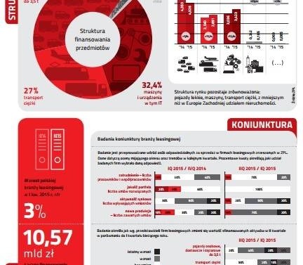 Ponad 10,5 mld złotych klienci firm leasingowych przeznaczyli na sfinansowanie dóbr ruchomych i nieruchomości przy pomocy leasingu i pożyczki w I kwartale 2015r. W większości były to inwestycje w dobra ruchome: pojazdy osobowe i dostawcze, ciężarowe oraz maszyny i urządzenia.
