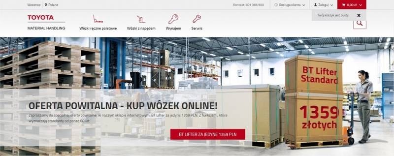 W marcu tego roku, Toyota Material Handling Polska uruchomiła sklep Internetowy pod adresem shop.toyota-forklifts.pl. Na stronie można znaleźć szeroki wybór ręcznych i elektrycznych wózków paletowych oraz wynajem i usługi serwisowe wózków widłowych.