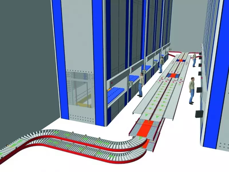 - Systemy kompletacyjne, gdzie w połączeniu z układem magazynowym występują stacje kompletacyjne zasilane pojemnikami źródłowymi, z których pracownik lub robot dokonuje pobrania żądanego towaru.